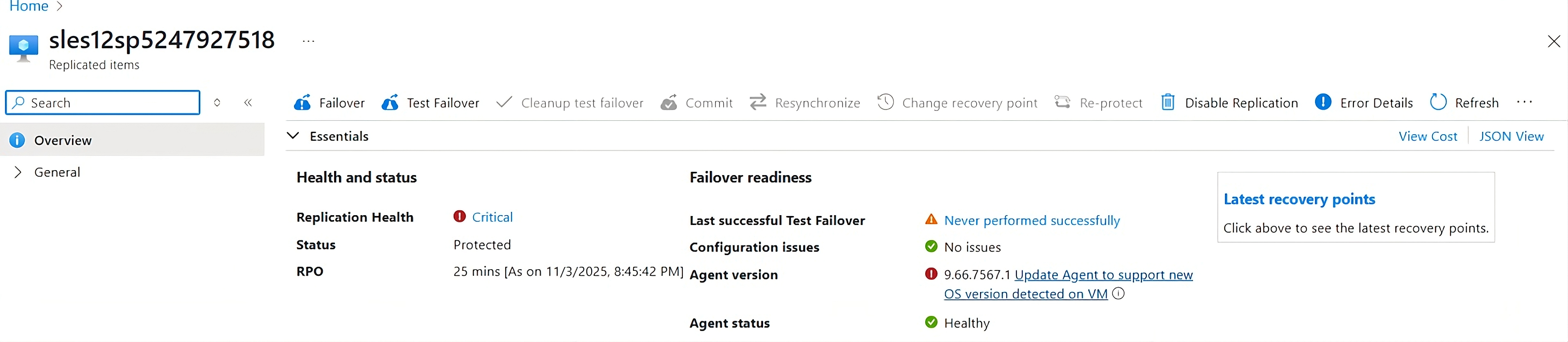 | Encryption at host | Not supported. | The VM is protected, but the failed-over VM doesn't have encryption at host enabled. For more information, see Enable end-to-end encryption by using encryption at host. |