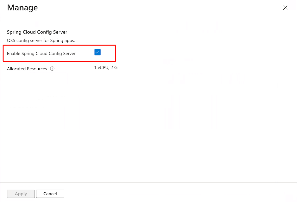 You can enable and disable Spring Cloud Config Server after service creation using the Azure portal or Azure CLI. Before disabling Spring Cloud Config Server, you're required to unbind all of your apps from it.