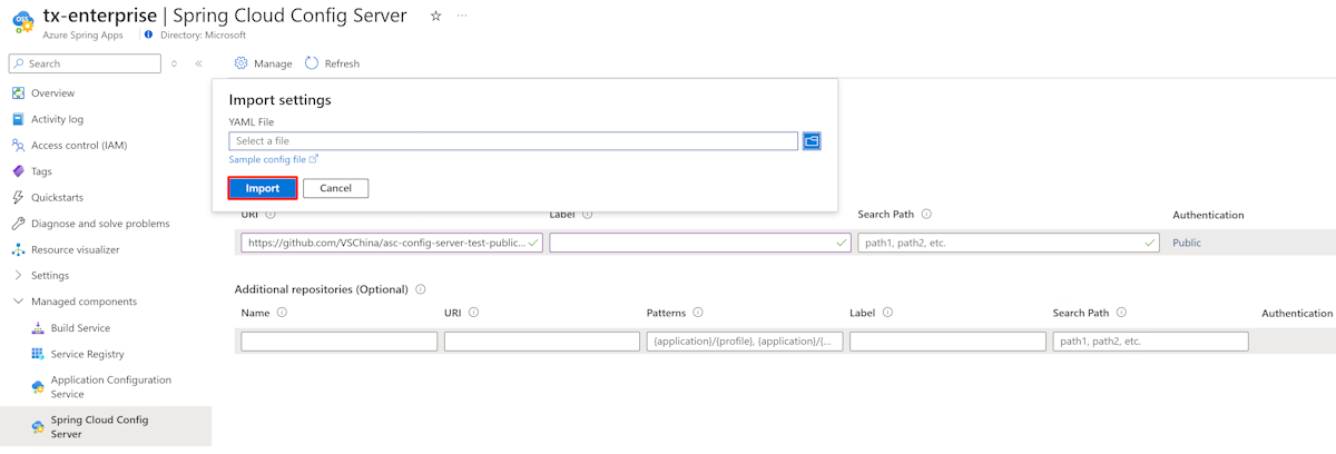 1. Select Import settings and then select the YAML file from your project directory. Select Import.