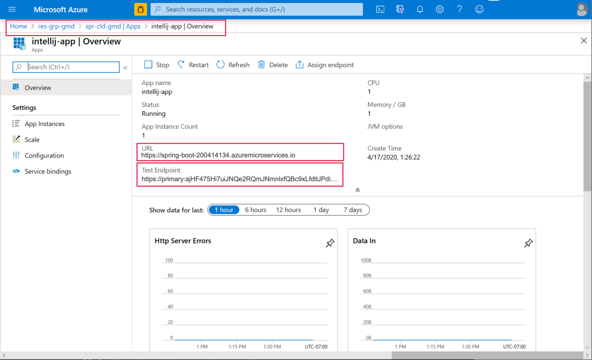 mvn packageon the project and then create the new app and deploy the jar generated by thepackagecommand.If the app URL is not shown in the output window, get it from the Azure portal. Navigate from your resource group to the instance of Azure Spring Apps. Then select Apps. The running app will be listed. Select the app, then copy the URL or Test Endpoint.