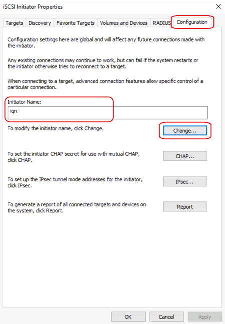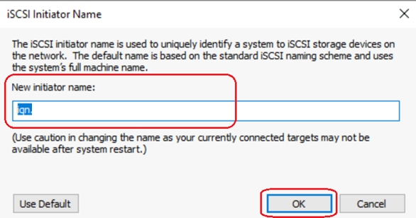 Select Start, search for iSCSI Initiator in the search box. This action opens the iSCSI Initiator.