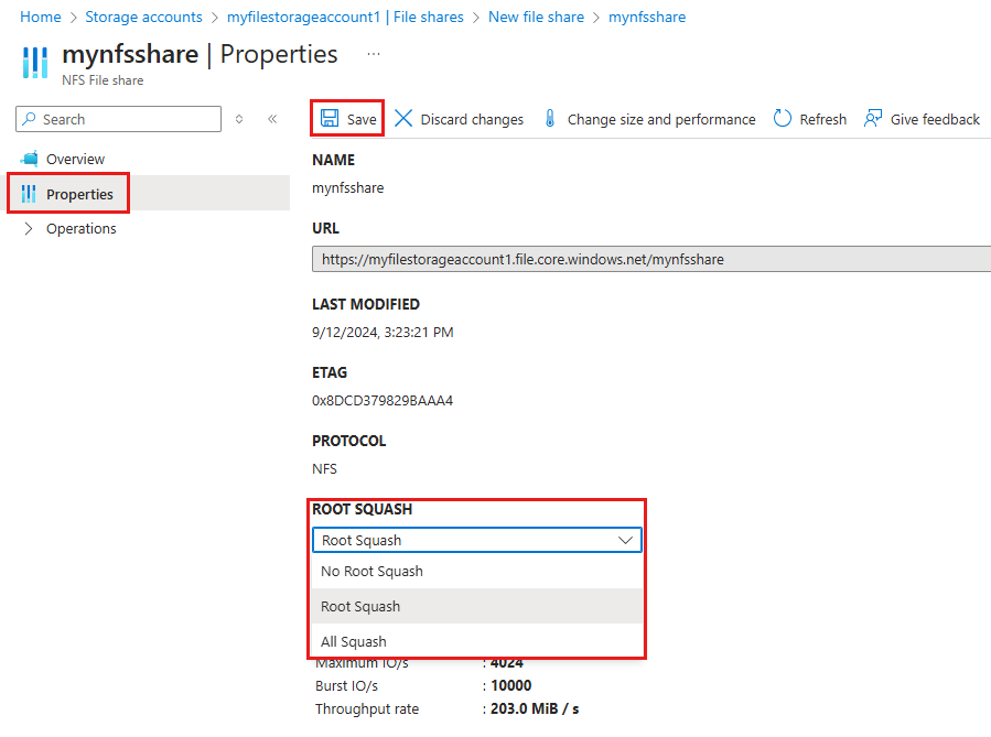 Configure root squash on an existing NFS file share (Microsoft.Storage)