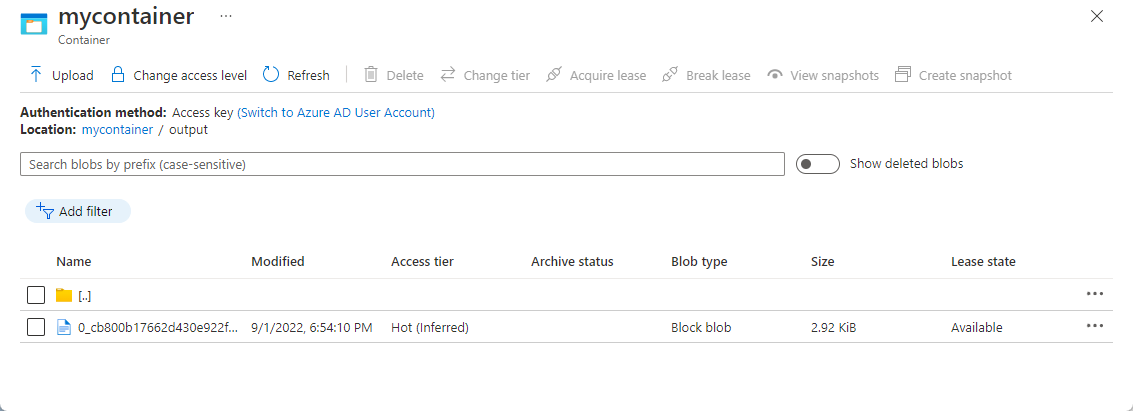 To view the output results, open the blob storage in the Visual Studio Code extension or in the Azure portal.