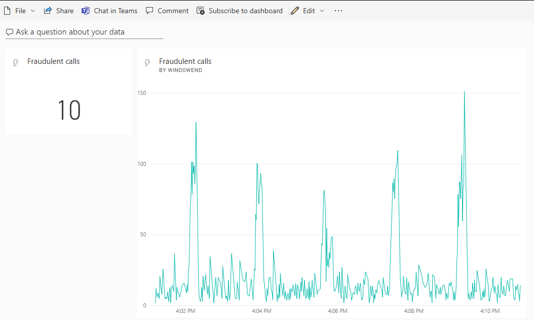 From your Power BI workspace, select + Create to create a new dashboard named Fraudulent Calls.
