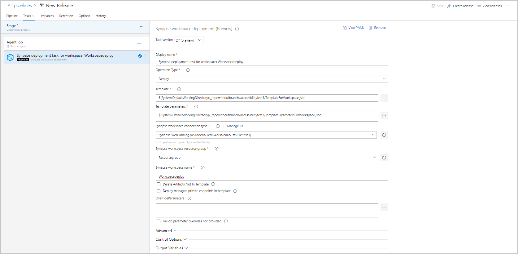 Use the Synapse workspace deployment task to deploy Synapse artifacts