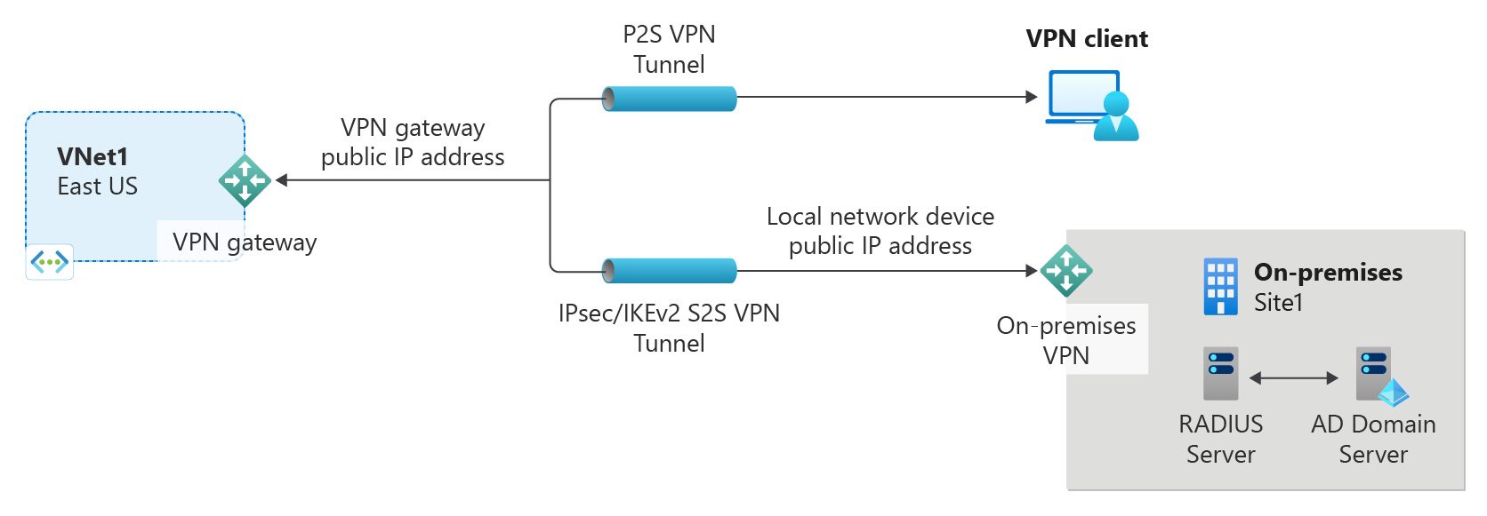 The RADIUS server can reside on-premises, or in your Azure virtual network. During authentication, the VPN gateway acts as a pass-through and forwards authentication messages back and forth between the RADIUS server and the connecting device. It's important for the VPN gateway to be able to reach the RADIUS server. If the RADIUS server is located on-premises, then a VPN site-to-site connection from Azure to the on-premises site is required.