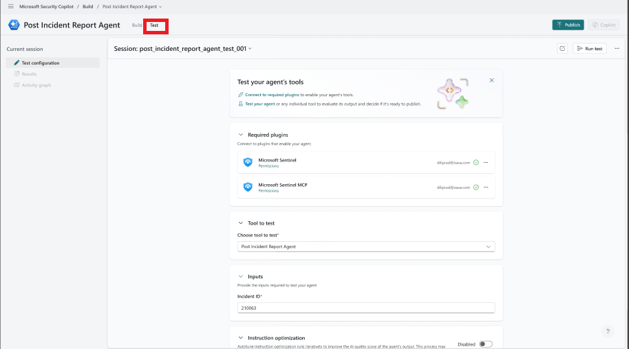 This article guides you on how to test the agent you created or its tools in Security Copilot.