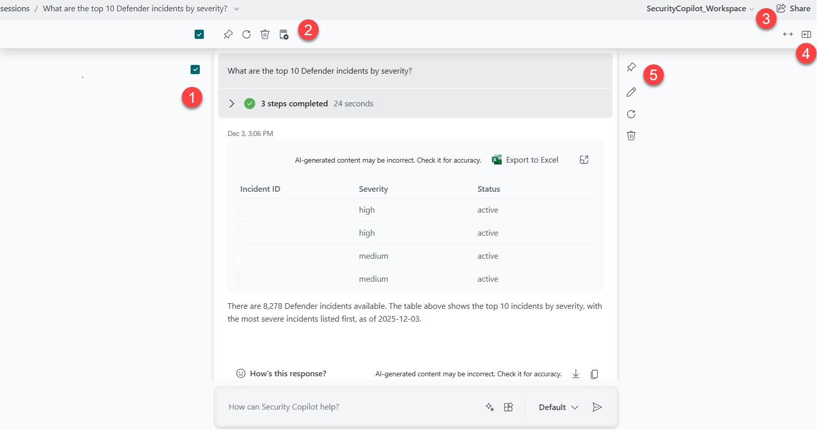 The Security Copilot platform has navigational features to maximize its functionality. As you explore the system, reference this article for more details.