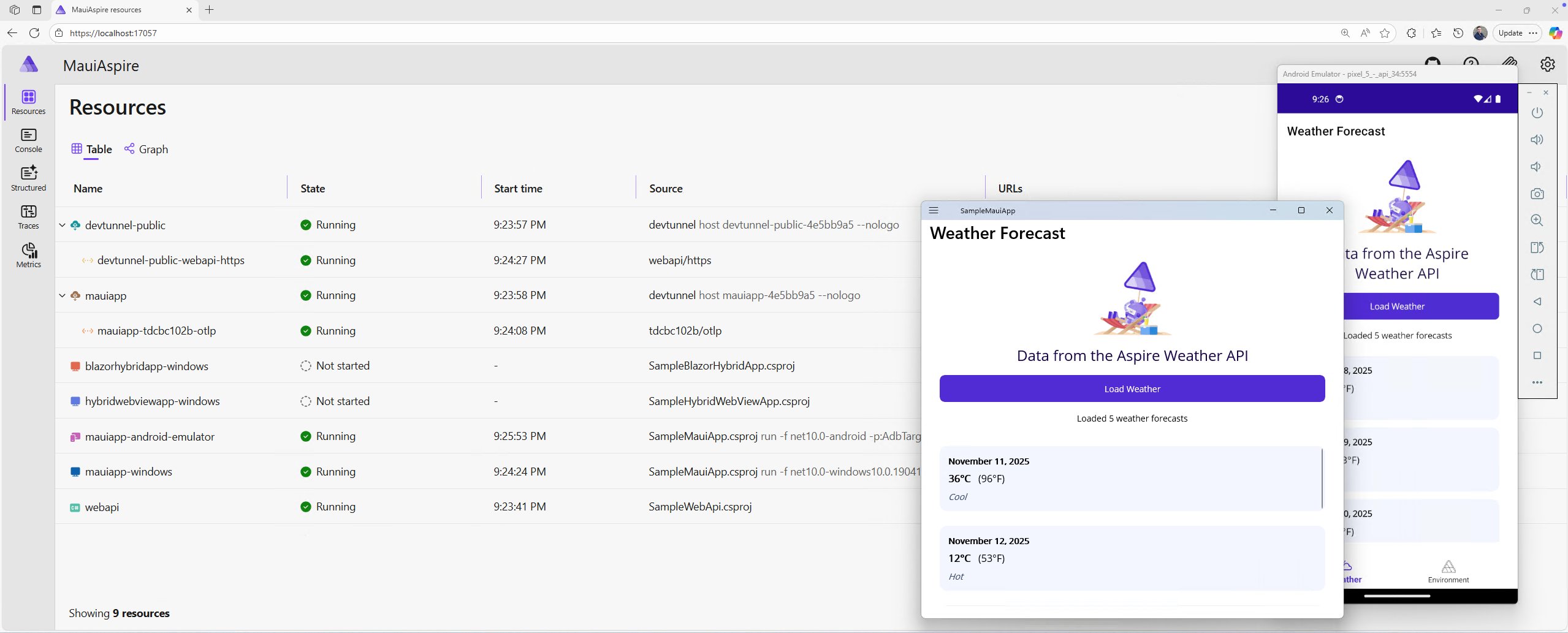 10.0.2.2for Android or deal with certificate validation issues. - Automatic service discovery: Your MAUI app automatically discovers and connects to local services without hardcoded URLs.