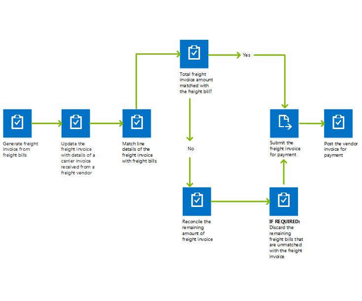 This article describes the freight reconciliation process, which is also known as the matching process. During this process, system-generated freight bills that contain estimated freight costs are matched to actual invoices that are received from carriers. Any differences (variances) are reconciled.