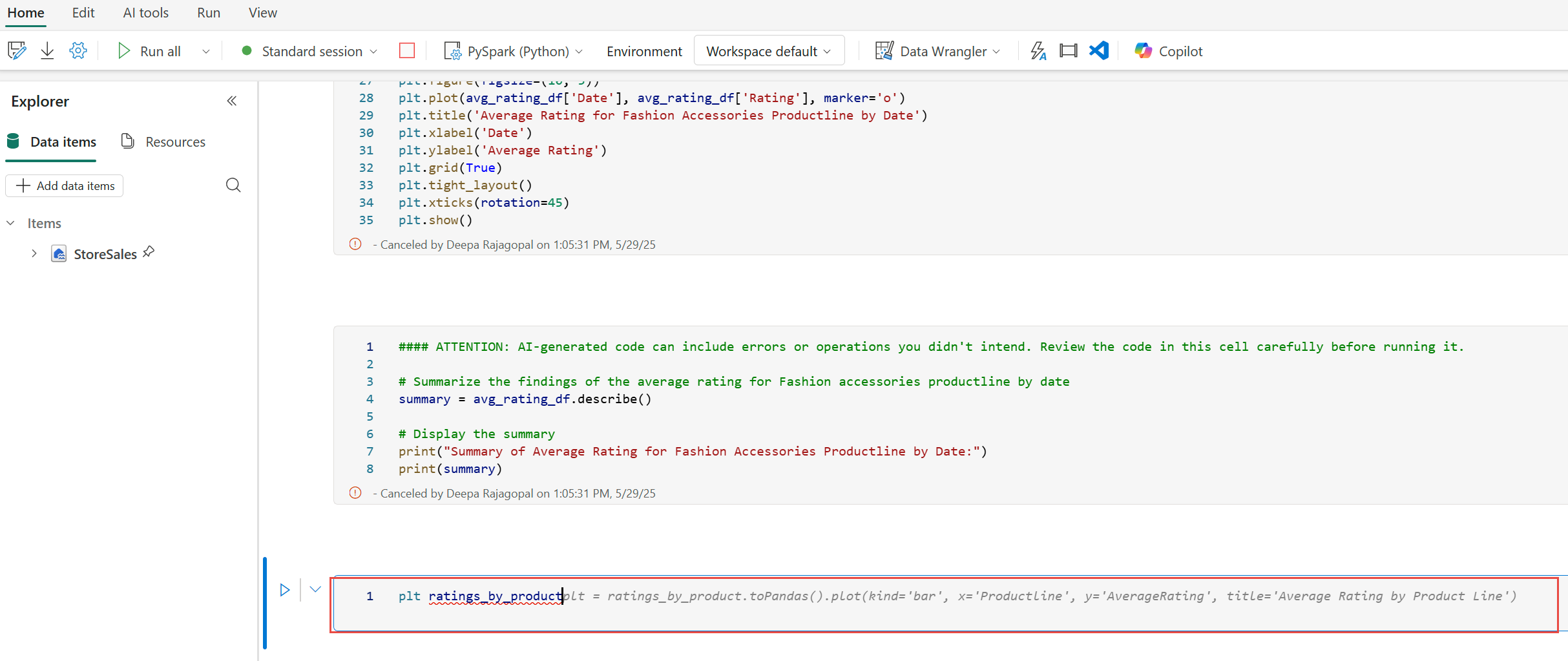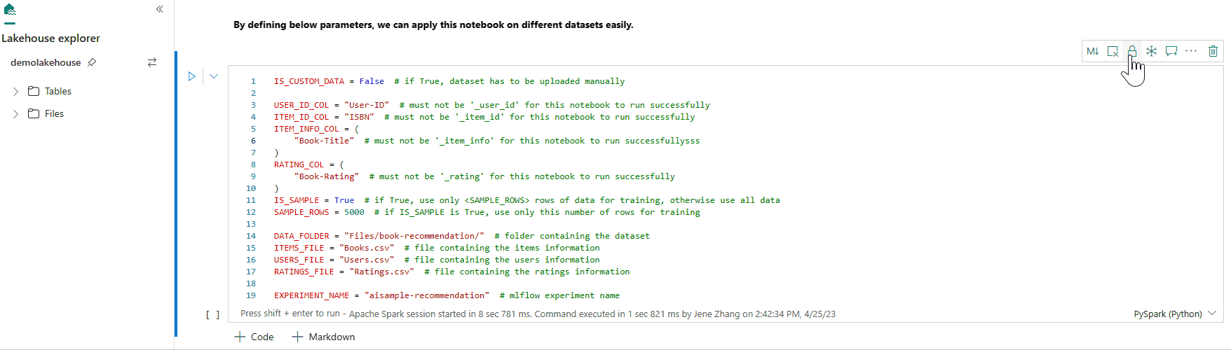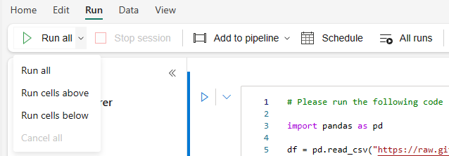 Fabric notebooks are integrated with the Monaco editor to bring IDE-style IntelliSense to the cell editor. Syntax highlight, error marker, and automatic code completions help you to quickly write code and identify issues.