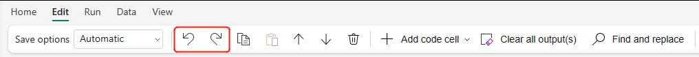 In-cell text operations and code cell commenting operations can't be undone. You can undo or redo up to 10 of the latest historical cell operations.