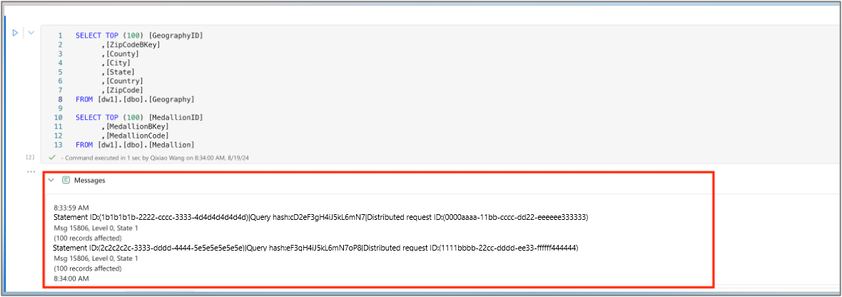 Monitoring T-SQL notebook execution
