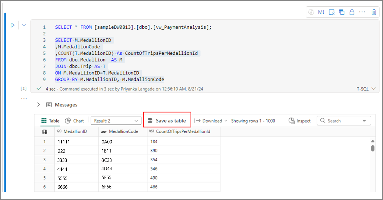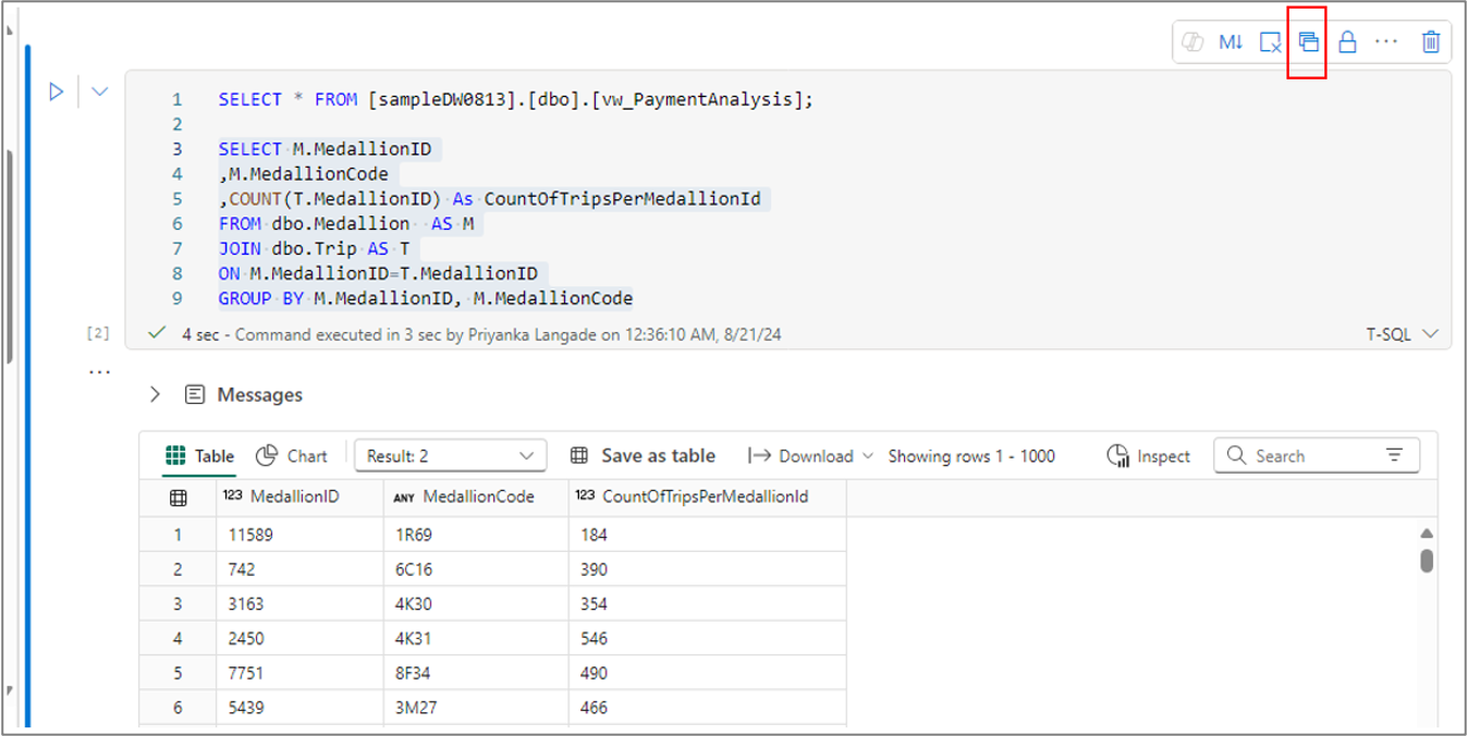 Create and run T-SQL code in a notebook
