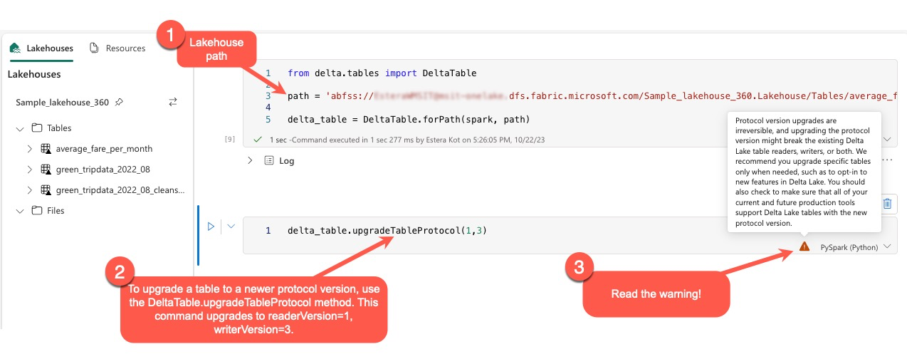 It's essential to note that when performing this upgrade, users receive a warning indicating that upgrading the Delta protocol version is a nonreversible process. This means that once the update is executed, it can't be undone.