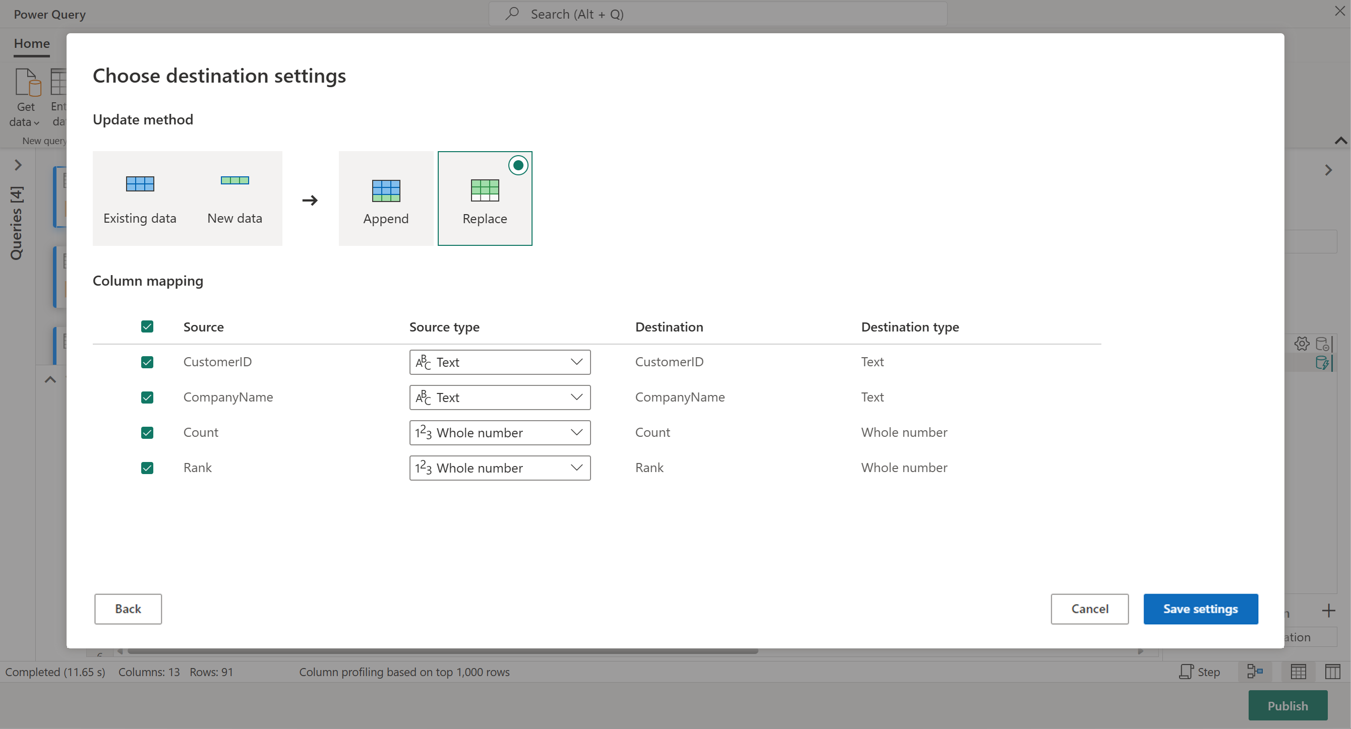 Now rename the resulting query as Ranked Customers using the Query settings pane on the right side of the screen.