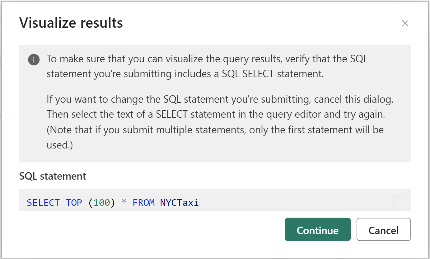 USEas one single request.Visualize results currently doesn't support SQL queries with an