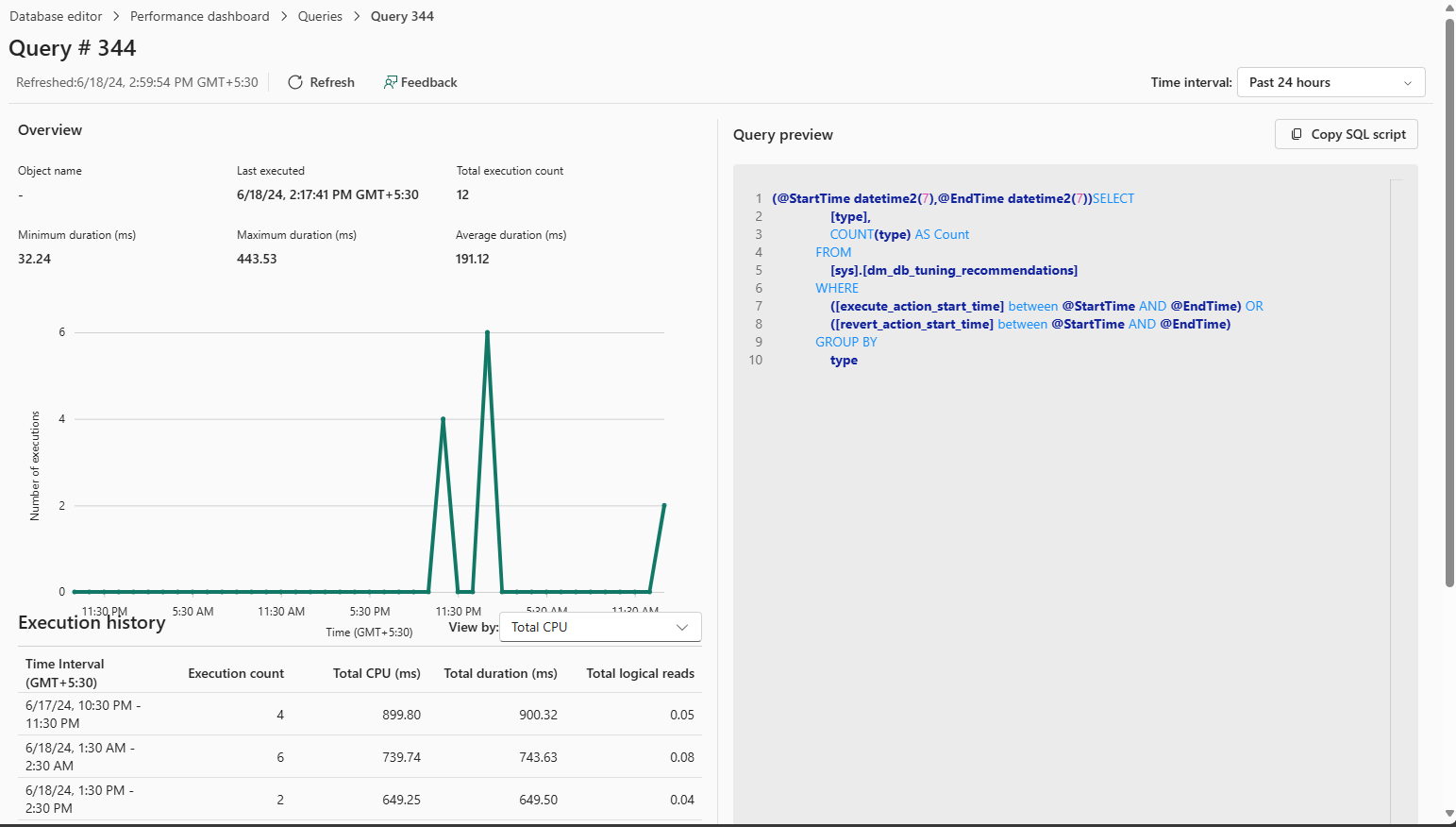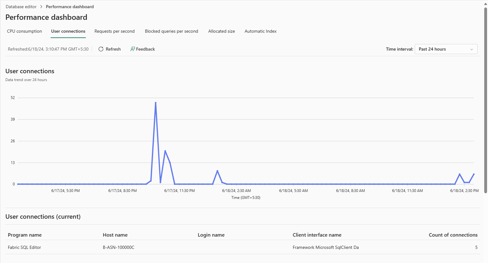 The Performance Dashboard in Fabric SQL database displays the performance status of the database and offers varying levels of metrics visibility.