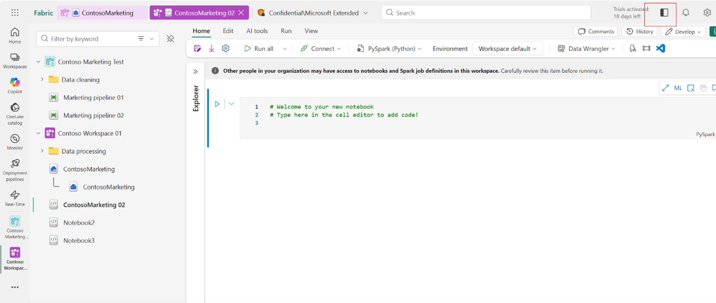 The previous limit of 10 open items has been increased. You can keep more resources active at once. This is especially useful for complex workflows that require multiple pipelines, notebooks, or reports.