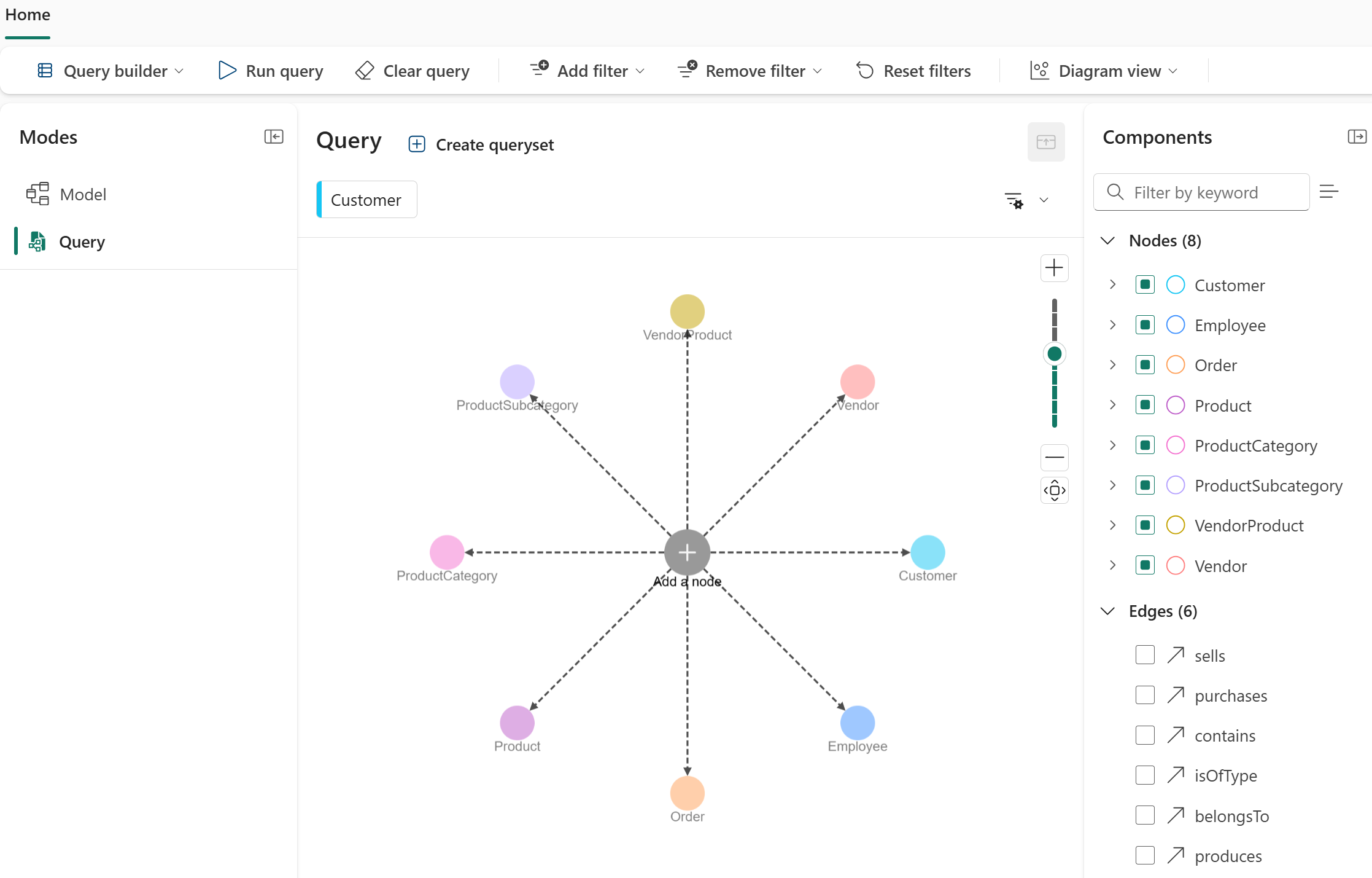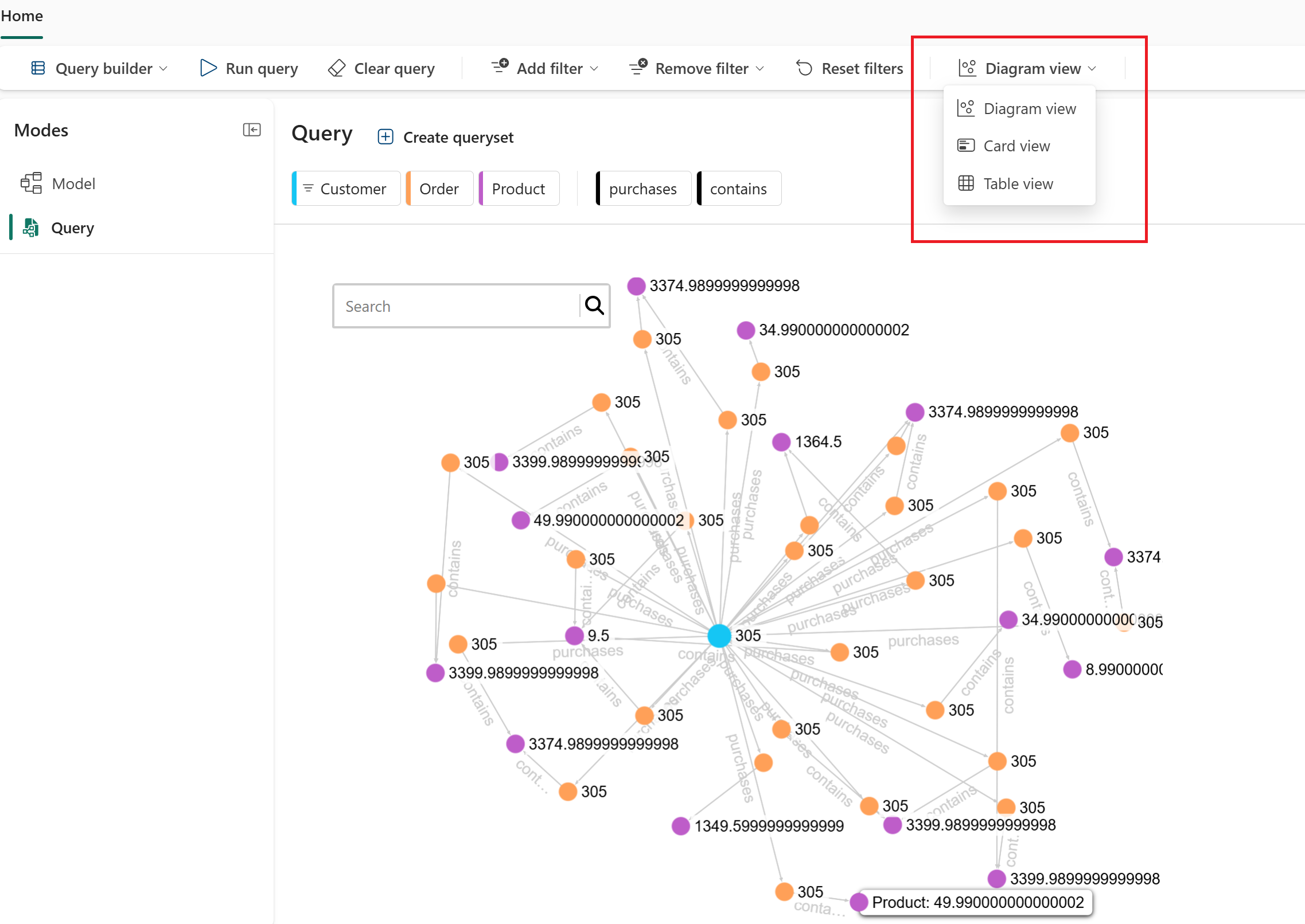 - Diagram view: Visualize the graph structure and relationships. This view is the default.