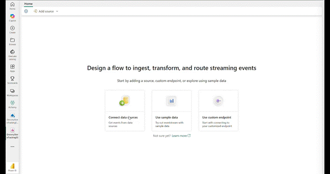 On the Connect page, follow one of these steps based on whether you're using Eventstream or Real-Time hub.