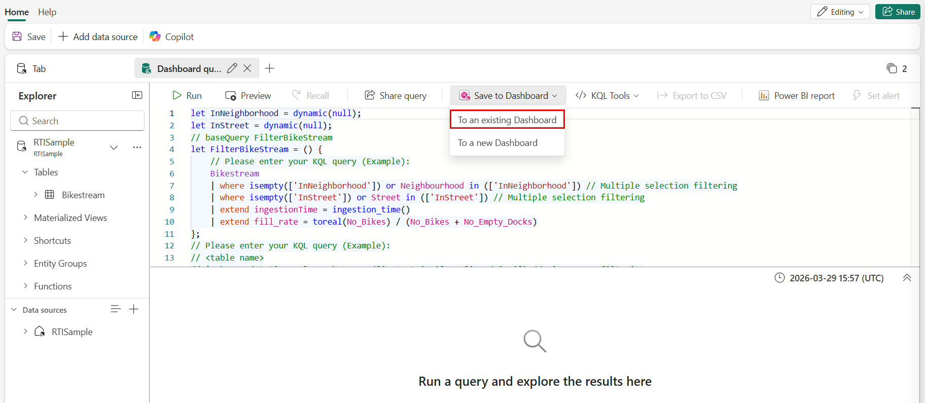 Any edits made to the query using this flow won't be reflected in the original Real-Time Dashboard.