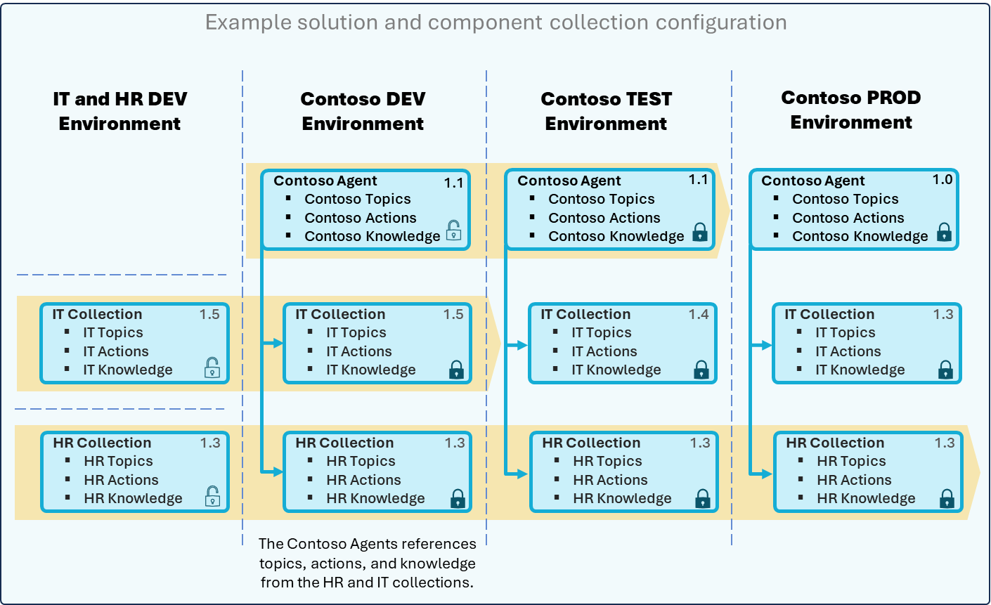 - Enable reuse of agent components (topics, actions, knowledge) across multiple environments.