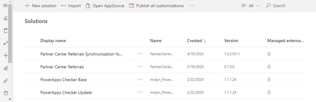 Partner Center Referrals Synchronization for Dynamics 365 is now available in the Solutions list.