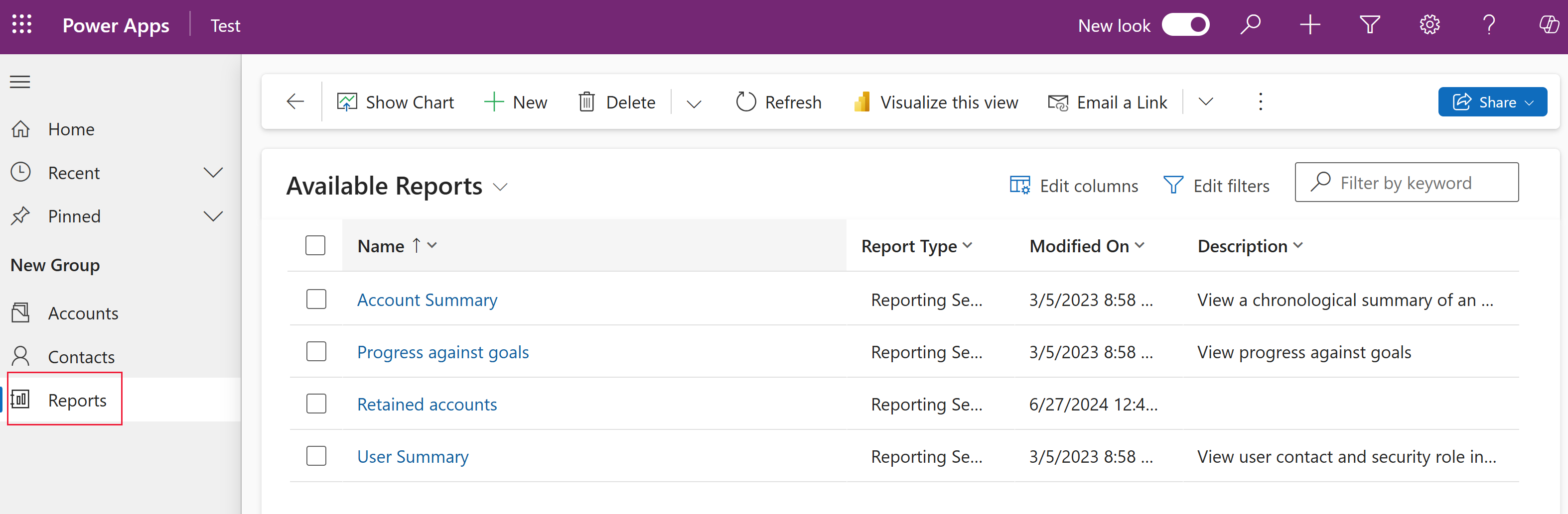 System reports are available to all users. Individuals who create or otherwise own reports can share them with specific colleagues or teams, or can make the reports available to the organization, so that all users can run them. These reports use FetchXML queries that are proprietary to Microsoft Dataverse and retrieve data to build the report. Reports that you create in a Power Apps app are Fetch-based reports.