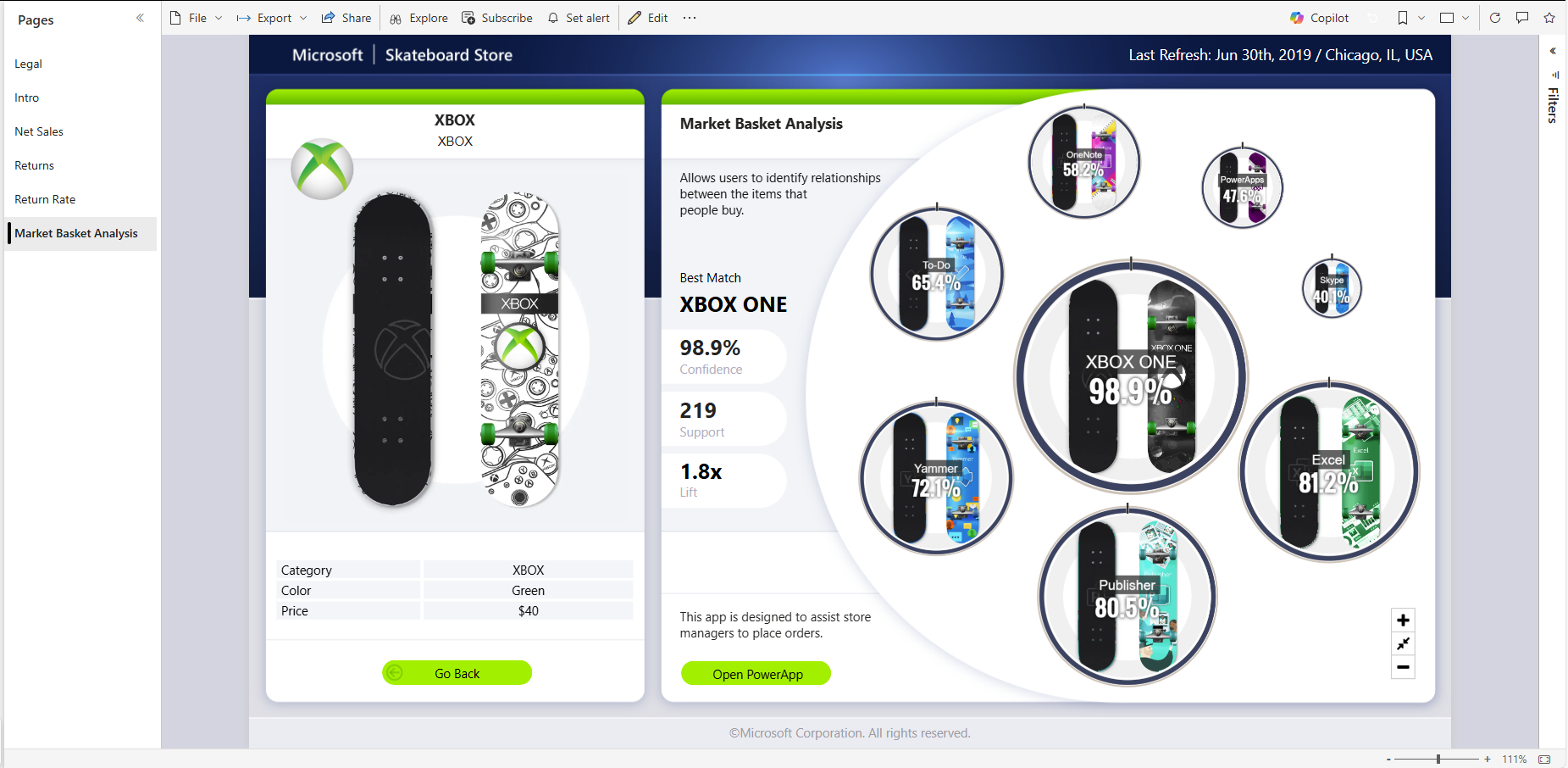 - Chat in Microsoft Teams directly from the Power BI service.