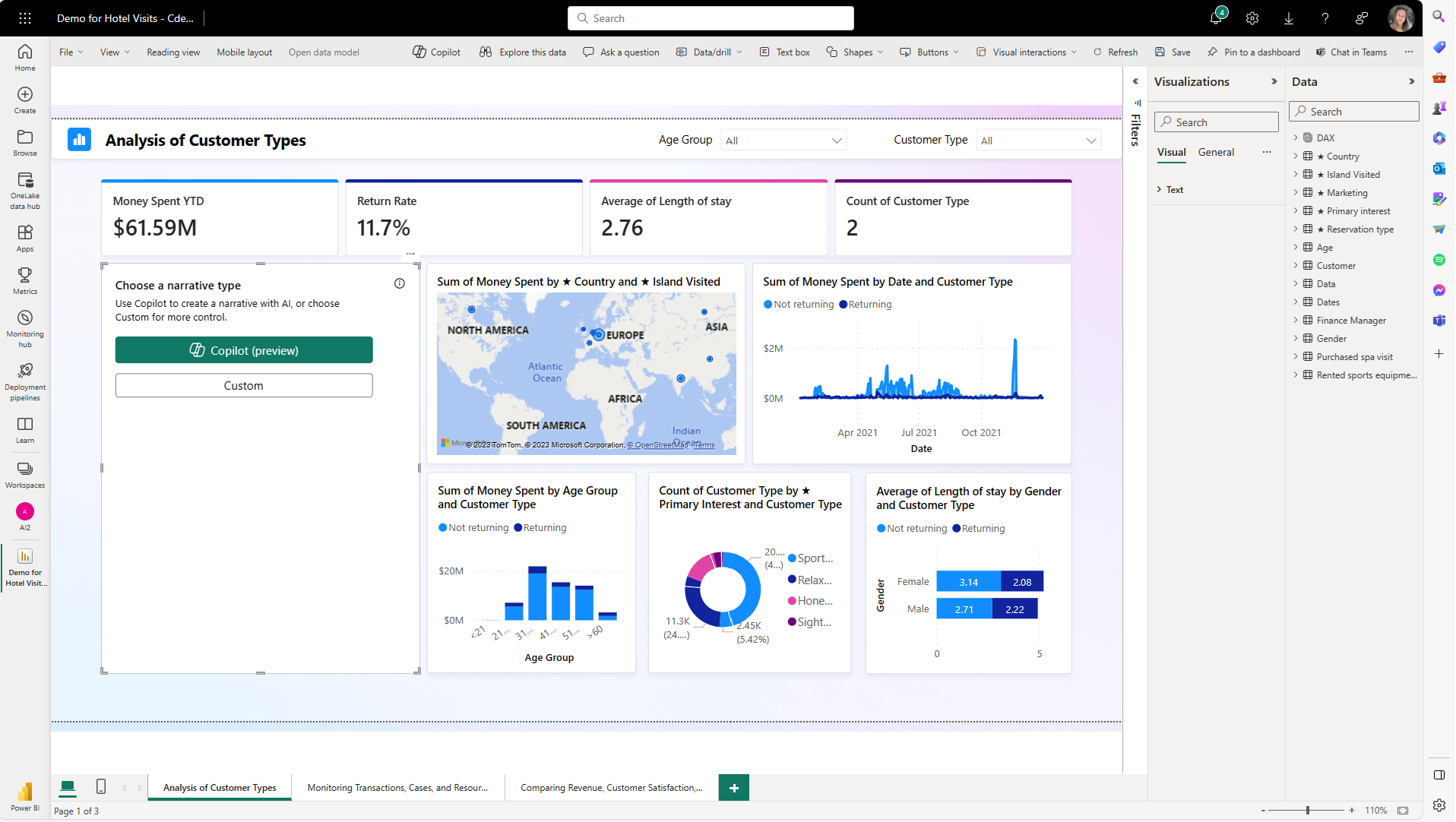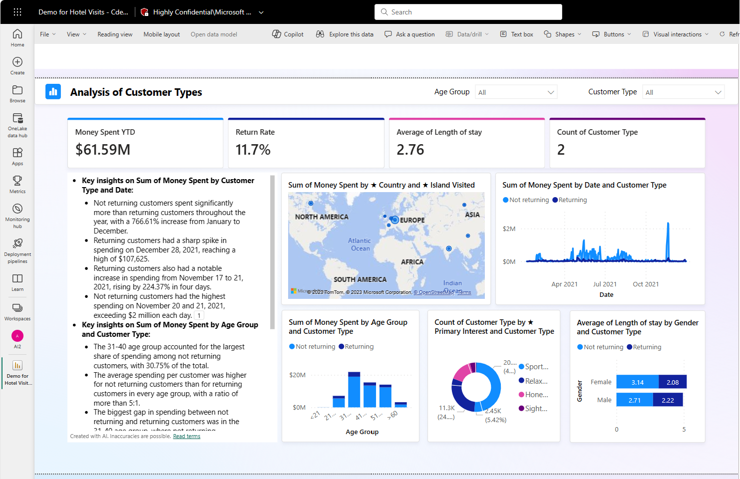 When you're satisfied with the narrative, you save the report just like any other report. If you close and reopen the report that Copilot generated in the Power BI service, the report opens in Reading view and you don't see Copilot.