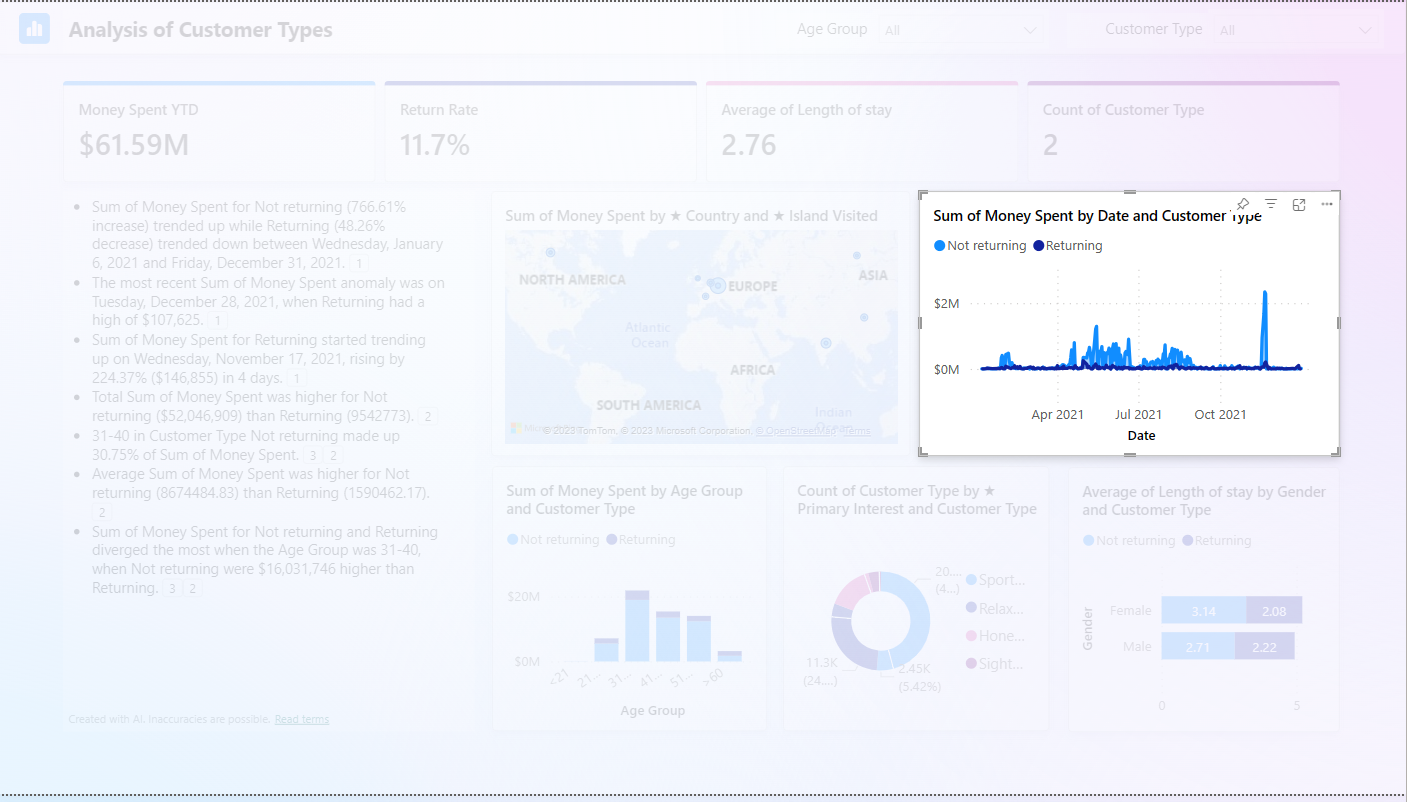 - Users need to refresh the summary visual when they update or filter a page, report, or data, to see an updated summary.