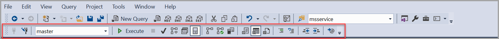 You can also add the SQL Editor toolbar by selecting the View menu, selecting Toolbars, and then selecting SQL Editor. If you add the SQL Editor toolbar when no Query Editor windows are open, all the buttons are unavailable.