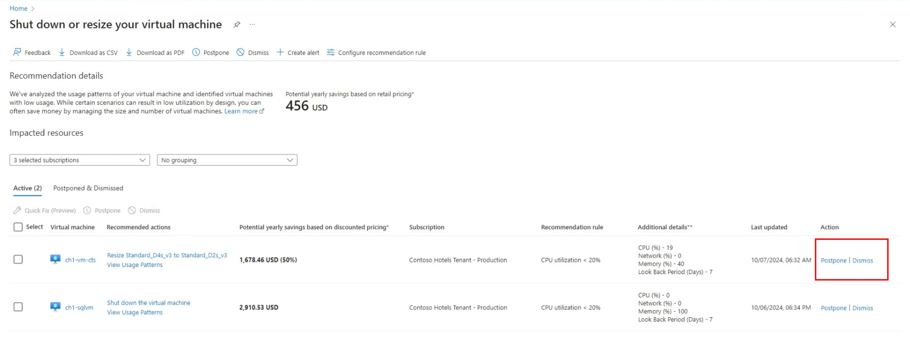 However, notice that you can also choose to Postpone or Dismiss the recommended action, as we discussed in a previous unit.