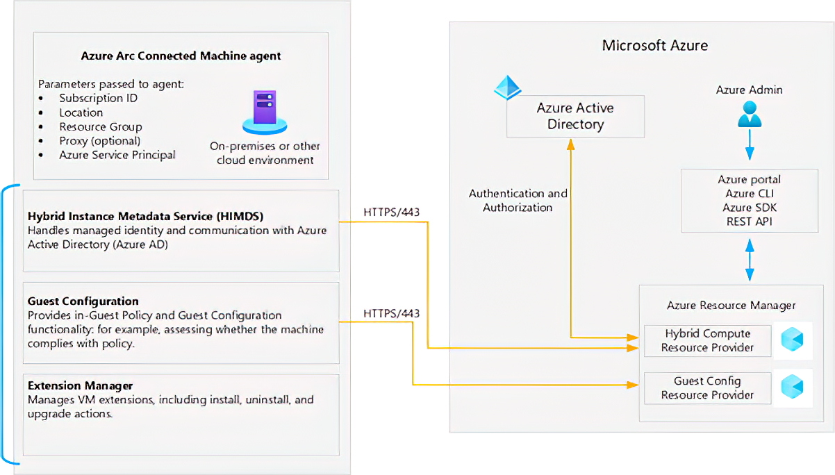 Azure Arc relies on a locally installed agent to establish a logical connection between the local resource and Azure. This agent is the Connected Machine agent. The Connected Machine agent package contains several logical components, which are bundled together:
