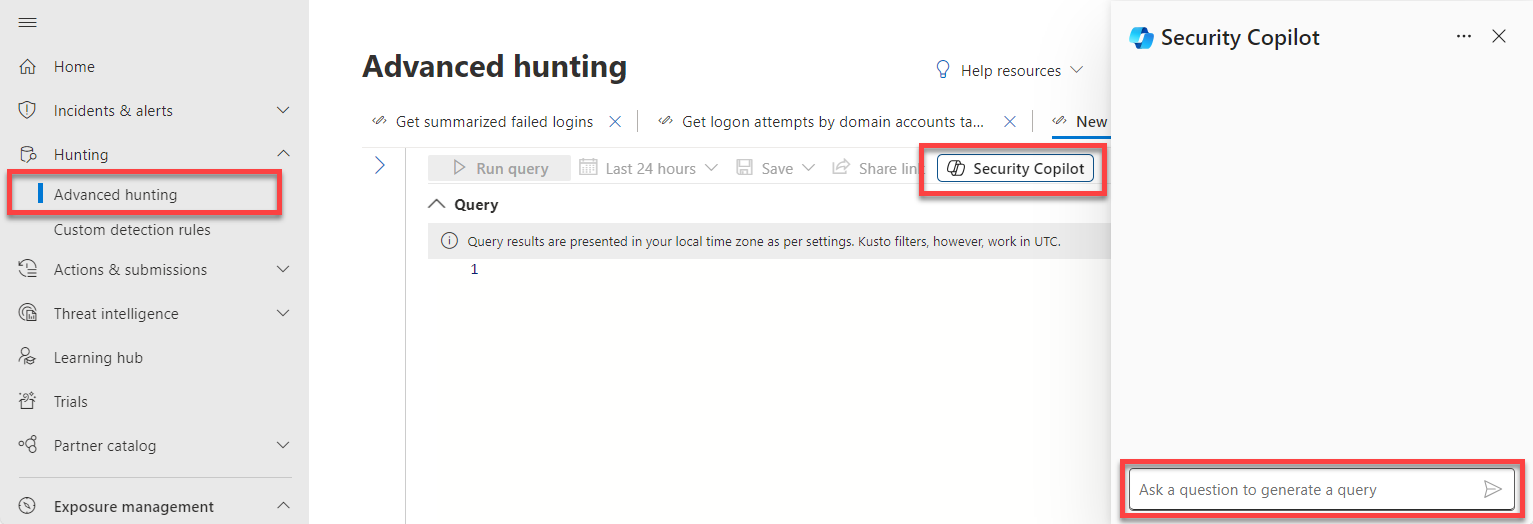 Copilot in Microsoft Defender XDR comes with a query assistant capability in advanced hunting.