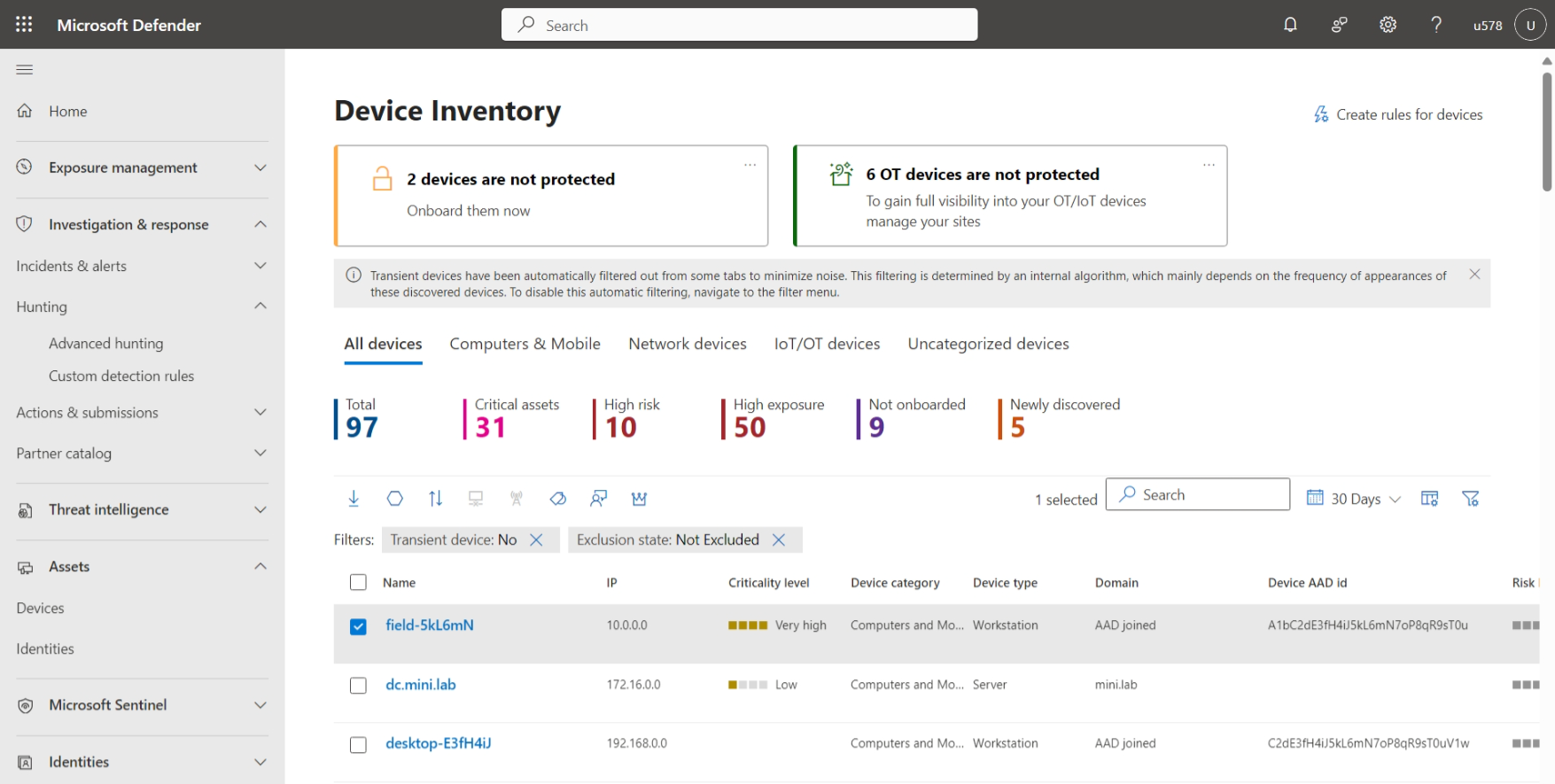 Group devices logically by adding tags for context, and exclude devices you don't want to assess. Start an automated investigation for devices.