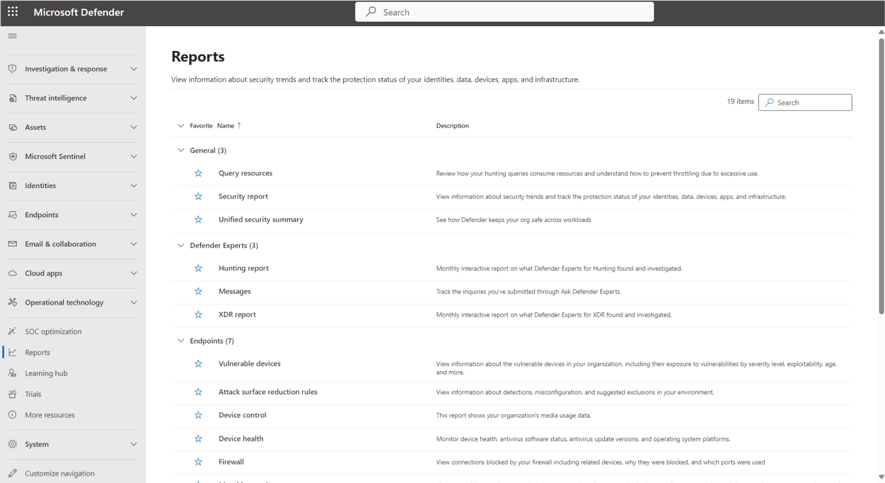 Screenshot of the Reports page in the Microsoft Defender portal