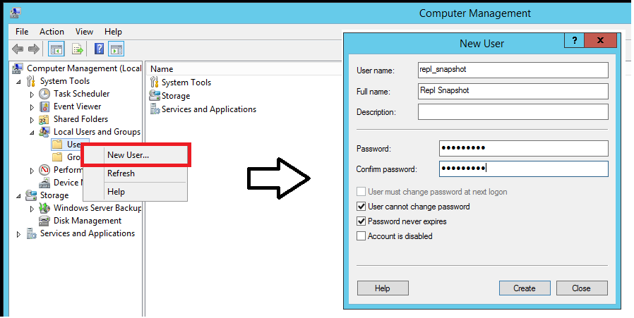 - Create Windows accounts for replication.