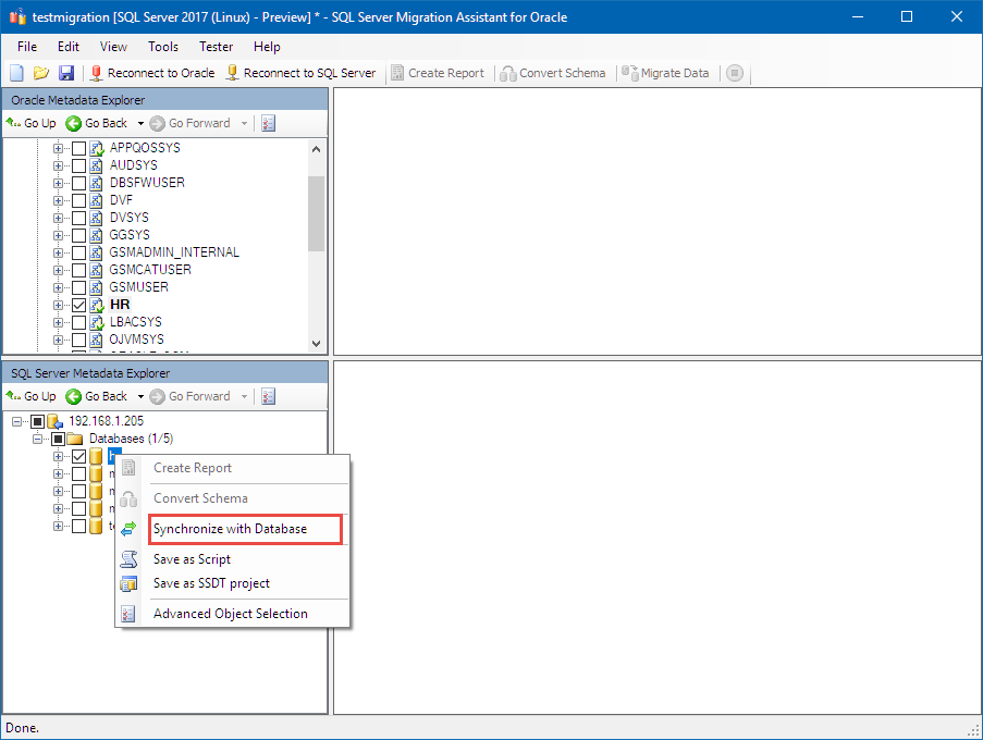 In the Oracle Metadata Explorer, right-click HR, and select Migrate Data.