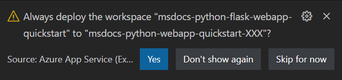 Il Servizio app rileva automaticamente la presenza di un'app Flask. Per questo avvio rapido non è necessaria alcuna configurazione aggiuntiva.