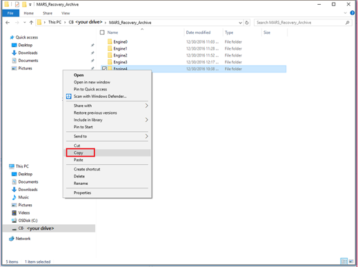Nell'Esplora risorse, copiare i file e le cartelle che si desidera ripristinare e incollarli in qualsiasi percorso desiderato sul server.