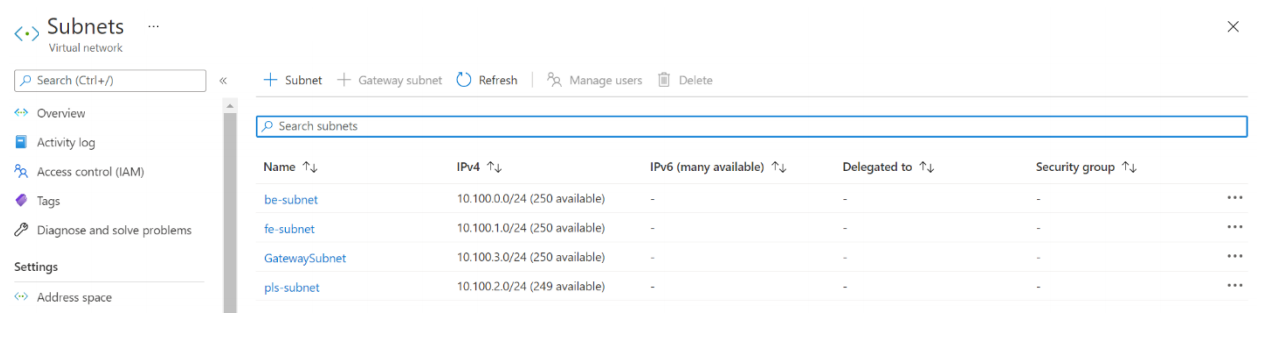 | pls-subnet | subnet per il servizio collegamento privato |