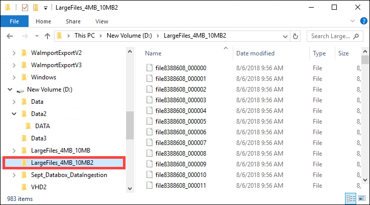È responsabilità dell'utente copiare i dati locali nella condivisione corrispondente al formato di dati appropriato. Ad esempio, copiare i dati dei BLOB in blocchi nella condivisione BlockBlob. Copiare i VHD nella condivisione PageBlob. Se il formato dati locale non corrisponde alla cartella appropriata per il tipo di archiviazione scelto, il caricamento dei dati in Azure ha esito negativo in un passaggio successivo.
