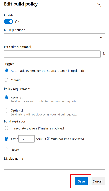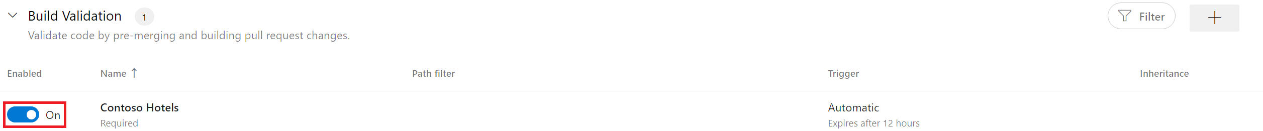 Prima di abilitare le annotazioni della richiesta pull, il ramo principale deve avere abilitato i criteri di convalida della compilazione per la compilazione CI.
