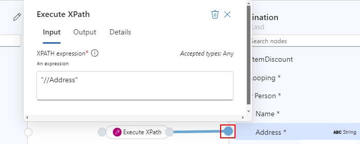 Questo esempio connette la funzione al nodo Indirizzo nello schema di destinazione:
