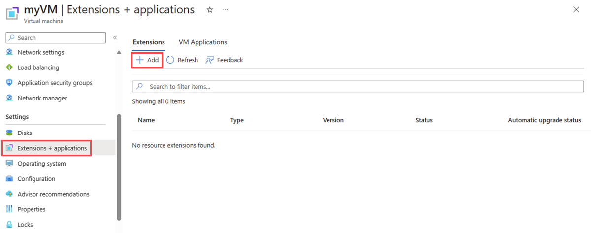 Selezionare + Aggiungi, cercare Network Watcher Agent e installarlo. Se l'estensione è già installata, è possibile visualizzarla nell'elenco delle estensioni.