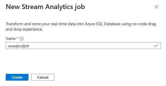 In questa sezione viene creato un processo di Analisi di flusso di Azure usando l'editor senza codice. Il processo trasforma lo streaming dei dati da un'istanza di Hub eventi (hub eventi) e archivia i dati dei risultati in un database SQL di Azure.