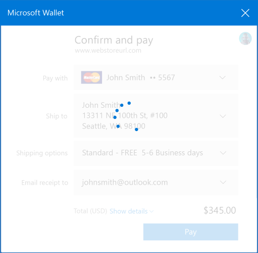 The Payment Request API standardizes the payment checkout process. This API requires less customization for web developers and provides a faster, more consistent, and therefore, less confusing experience for consumers. Because consumers can select payment instruments and shipping addresses from their Microsoft account, they are required to enter less data to complete purchases which reduces the time and data entry required to complete a payment.