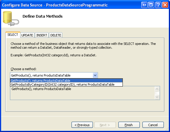 <asp:ObjectDataSource ID="ProductsDataSourceProgrammatic" runat="server"